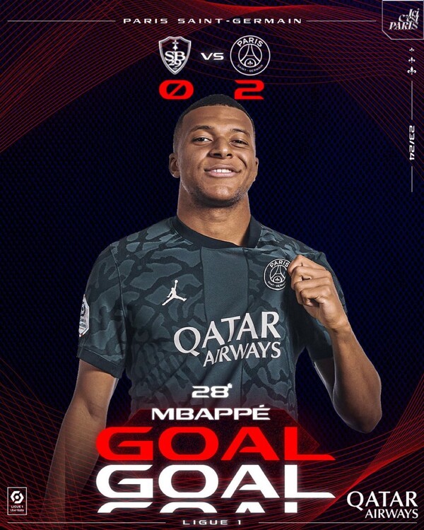 결국 여기서 득점이 나왔다. 음바페가 페널티킥 키커로 나섰다. 첫 슈팅은 골키퍼 선방에 막혔지만, 흐른 공을 재차 슈팅으로 연결해 득점으로 마무리했다. 음바페의 리그 10호골. 브레스트는 경기 종료 직전까지 총력정늘 퍼부었지만 최종 결과는 PSG의 3-2 승리였다.