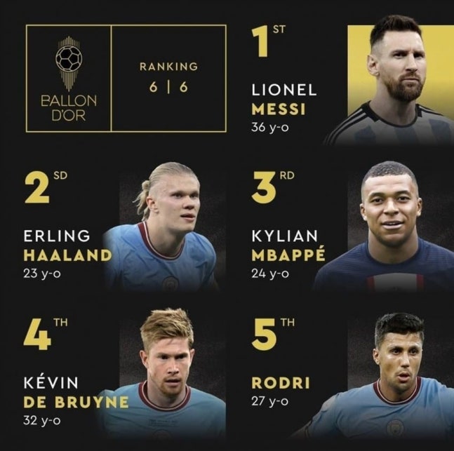 메시의 뒤를 이은 건 역시 홀란드와 음바페다. 홀란드는 트레블 영광에 힘입어 2위를 기록했고, 음바페 역시 프랑스를 카타르 월드컵 준우승으로 이끈 힘으로 득표에 성공했다. 다만 홀란드와 음바페는 앞으로 전성기를 구가할 나이라 내년부터 발롱도르를 둔 싸움을 본격화할 전망이다.