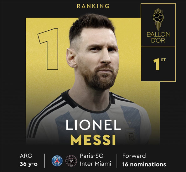 유럽 축구 소식에 능통한 파브리시오 로마노 기자는 자신의 SNS에 “리오넬 메시가 발롱도르를 받을 것이다. 메시 측과 소속팀 인터 마이애미는 이미 행사가 열리는 파리행 비행기를 예약했다”라고 전했다.