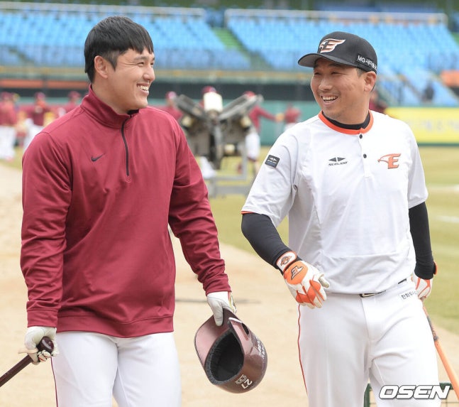 2015년 각각 넥센과 한화 시절 박동원과 허도환. 올해 같은 LG 소속으로 한국시리즈 우승에 1승만 남겨놓고 있다. /OSEN DB