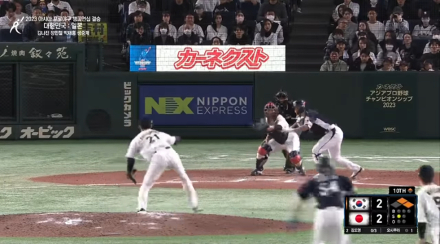 한 치의 물러섬도 없는 팽팽한 명경기에서 훼방을 놓은 것은 주심의 볼판정이었다. 한 개의 판정이 그야말로 경기의 흐름을 뒤집어 놓았다. APBC의 경우 연장전에 돌입할 경우 무사 1, 2루의 승부치기 상황에서 끝장승부를 펼치는데, 선두타자 김도영의 타석에서 석연치 않은 볼판정이 나왔다. 초구에 번트를 실패한 김도영은 2구째에도 번트를 시도하다가 방망이를 거둬들였는데, 일본의 바뀐 투수 요시무리 코지로가 던진 공이 바깥쪽 코스에 매우 높게 형성됐다.