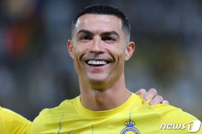 환한 표정의 알나스르 공격수 호날두. ⓒ AFP=뉴스1