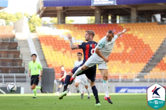 1, 2부리그로 갈린 이상 일정 조정만 한국프로축구연맹이 적절히 해준다면 교차해 활용 가능하다는 것이 최 단장의 생각이다. 그는 "두 팀이 사용해도 한 시즌에 홈 경기가 각각 19경기 안팎이다. 기능적으로 좋은 방안이다. 그라운드 잔디 관리도 어렵지 않다"라고 답했다.