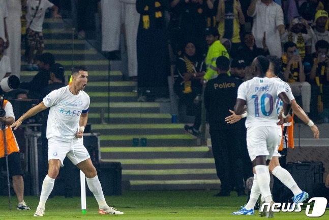 알이티하드는 전반 14분 압데라작 함달라의 선제골로 앞서갔으나 알나스르도 5분 뒤 호날두의 페널티킥 득점으로 균형을 맞췄다. 수비에 가담했던 벤제마가 박스 안에서 파울을 범해 페널티킥을 허용했다.