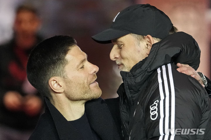 [레버쿠젠=AP/뉴시스]알론소 감독(왼쪽)과 투헬 감독. 2024.02.10.