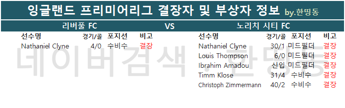 [한띵동] 08/09(금)~08/10(토) 축구 결장자 정보