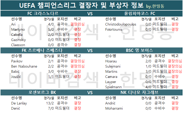 [한띵동] 08/27(화)~08/28(수) 축구 결장자 정보