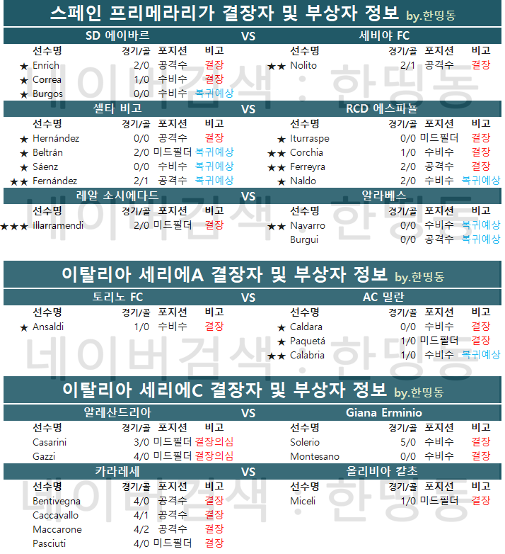[한띵동] 09/26(목)~09/27(금) 축구 결장자 정보