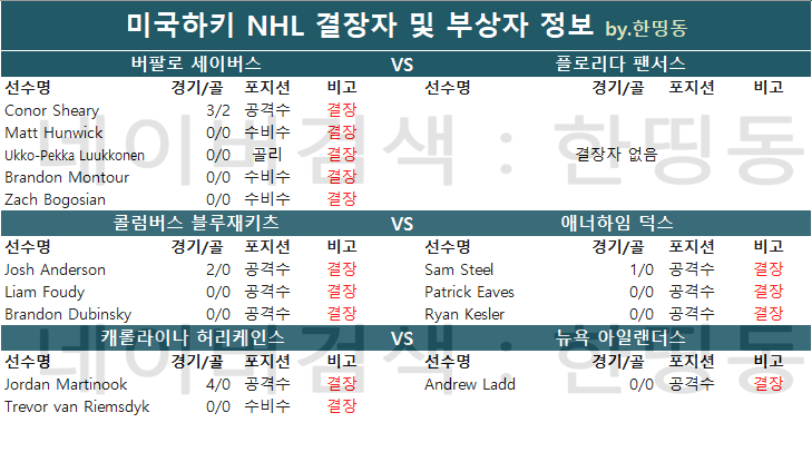 [한띵동] 10/12(토) NHL 결장자 정보