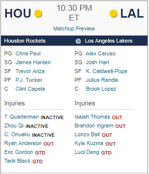 [NBA] 휴스턴 vs LA레이커스 선발 라인업
