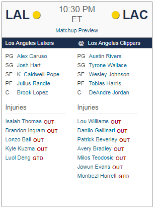 [NBA] LA레이커스 vs LA 클리퍼스 선발 라인업