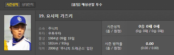 [NPB] 주니치 vs 야쿠르트 선발 투수