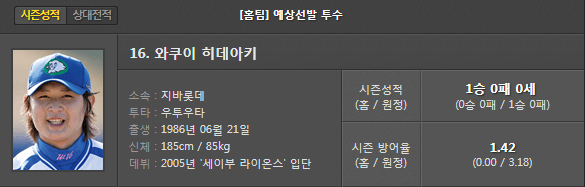 [NPB] 치바롯데 vs 세이부 선발 투수
