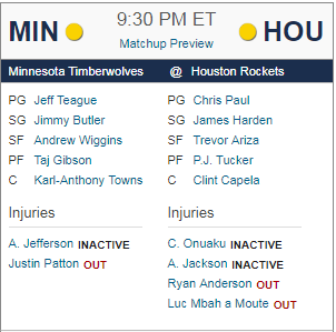 [NBA] 미네소타 vs 휴스턴 선발 라인업