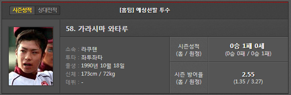 라쿠텐 vs 치바롯데 선발 투수