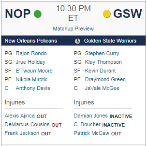 [NBA] 뉴올리언즈 vs 골든스테이트 선발 라인업