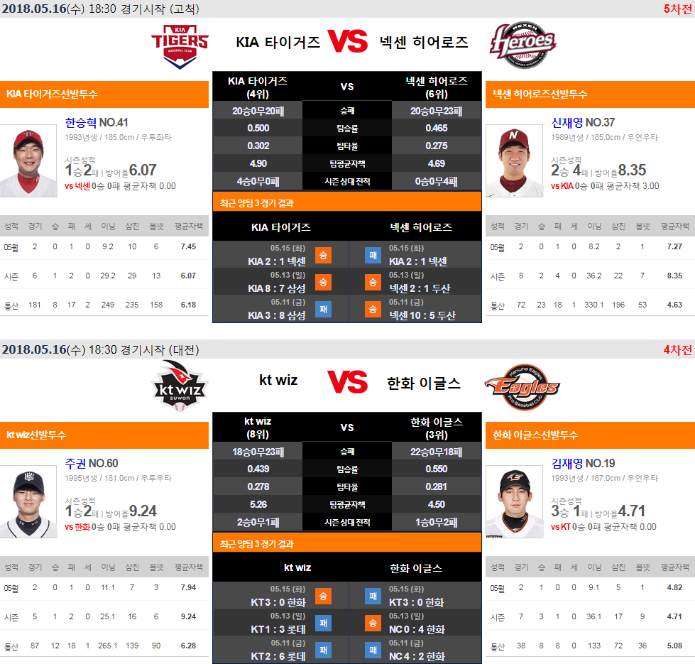 [KBO] 선발 투수 라인업