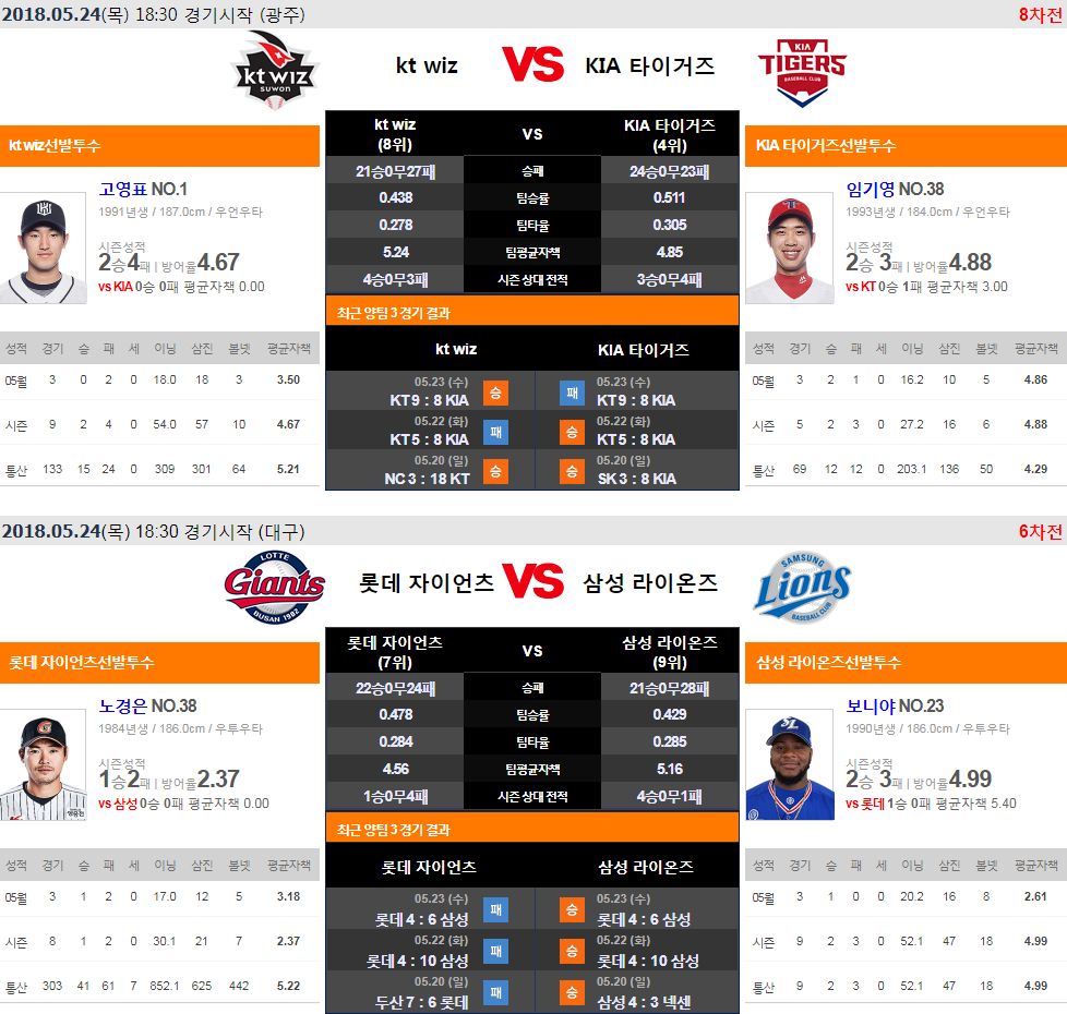 [KBO] 선발 투수 라인업