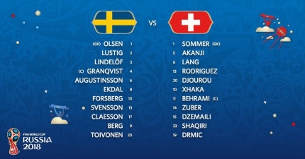 스웨덴 vs 스위스 선발 라인업