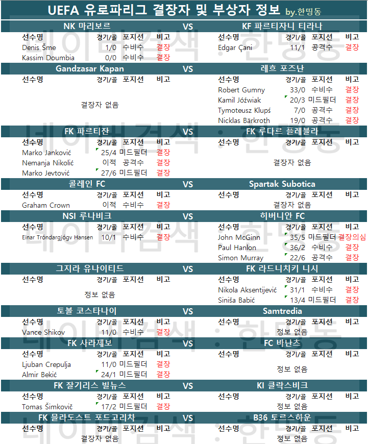 ●한띵동● 07/19(목)~07/20(금) 축구 결장자
