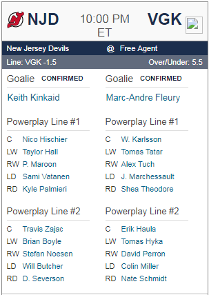 [NHL] 뉴저지 vs 베가스 선발 라인업