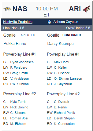 [NHL] 내슈빌 vs 애리조나 선발 라인업