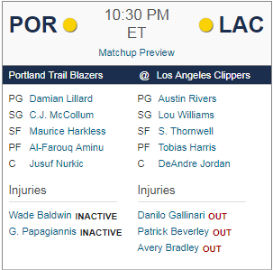[NBA] 포틀랜드 vs LA클리퍼스 선발 라인업