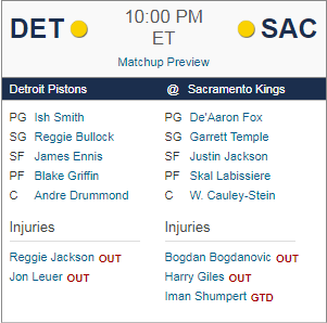 [NBA] 디트로이트 vs 새크라멘토 선발 라인업