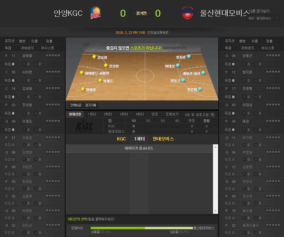 [KBL] 안양KGC vs 울산현대모비스 선발 라인업