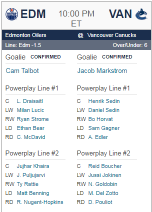 [NHL] 애드먼턴 vs 벤쿠버 선발 라인업