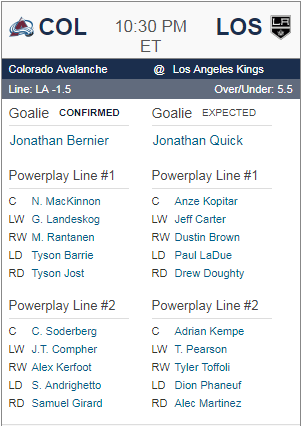 [NHL] 콜로라도 vs 킹스 선발 라인업