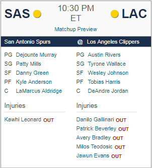 [NBA] 샌안토니오 vs LA클리퍼스 선발 라인업