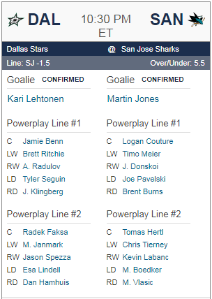 [NHL] 댈러스 vs 산호세 선발 라인업