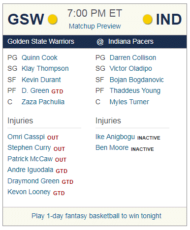 [NBA] 골든스테이트 vs 인디애나 선발 라인업