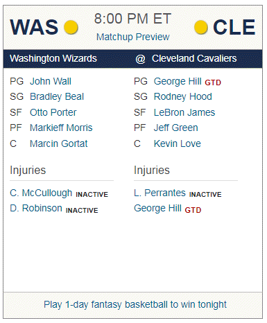 [NBA] 워싱턴 vs 클리블랜드 선발 라인업
